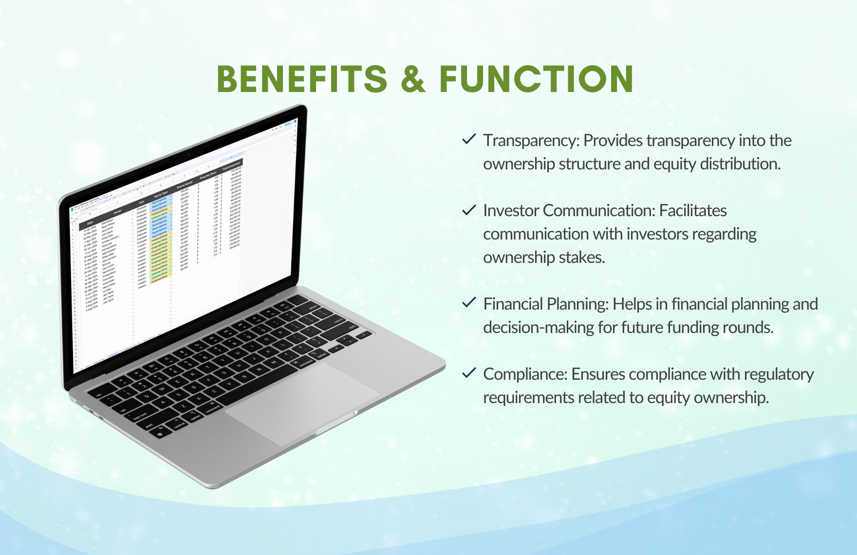Using the Capitalization Table Template Excel, you can quickly generate a clear and organized cap table that provides a snapshot of your company’s ownership structure. This tool is especially helpful when seeking investment or during acquisitions, as it provides potential investors or buyers with a transparent view of who owns what in your company.