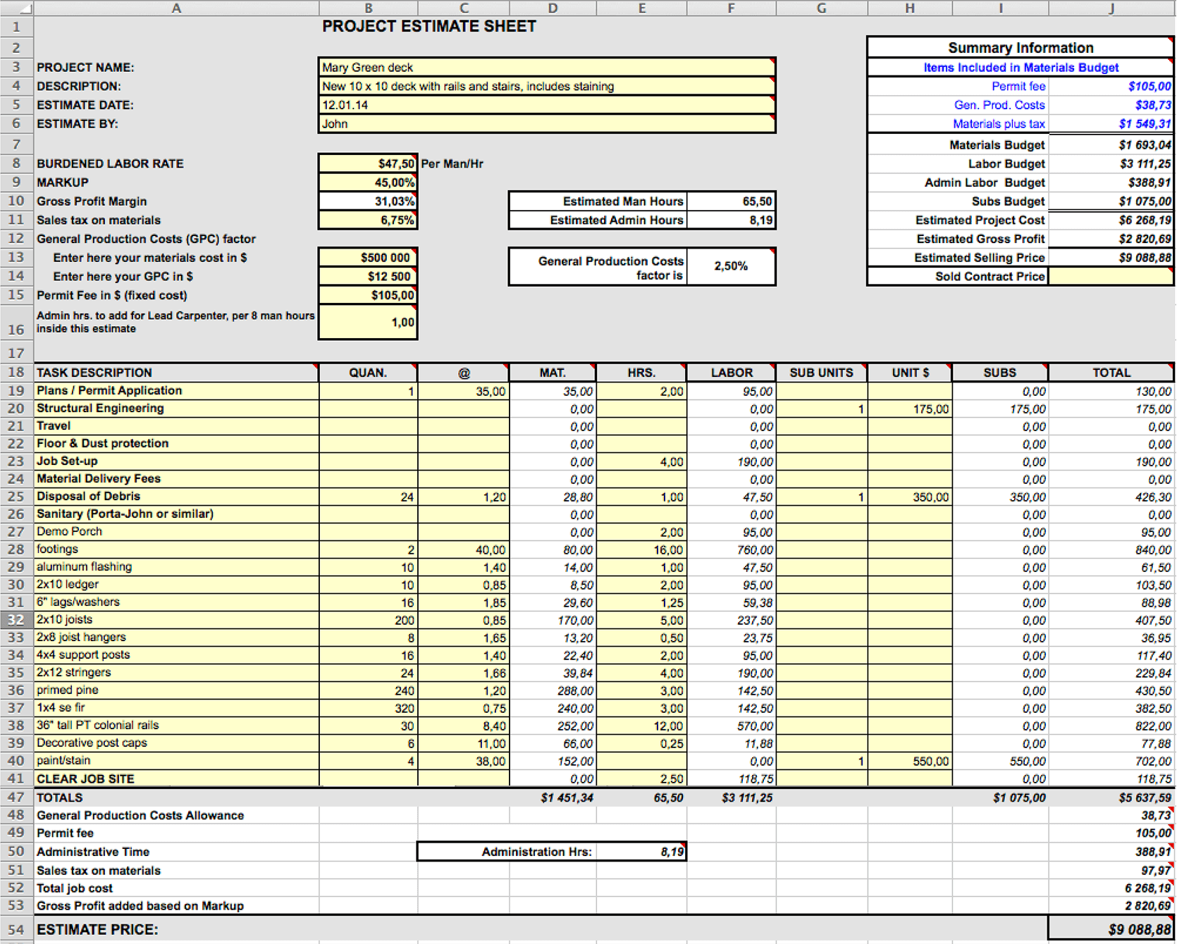 Construction Excel Templates