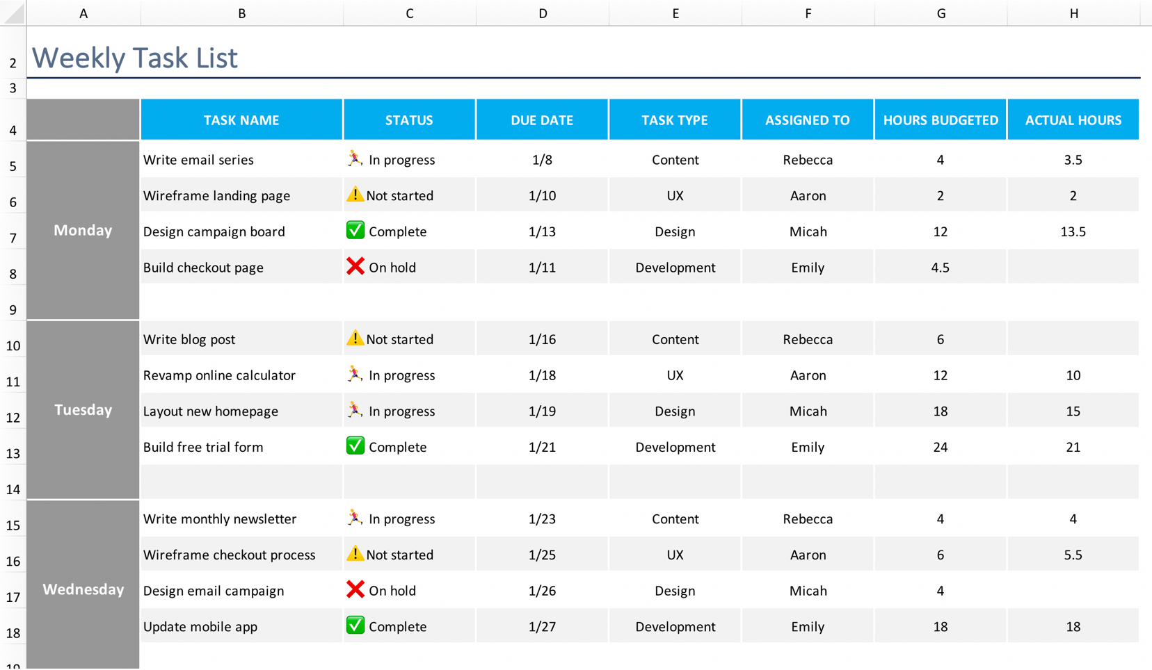 Daily Weekly Monthly Task List Template Excel Free DownloadDaily Weekly Monthly Task List Template Excel Free Download